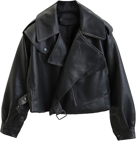 Women Black Faux Leather Jackets Casual Short Oversized Coat Asymmetrical Motor Biker Jacket