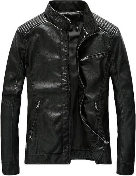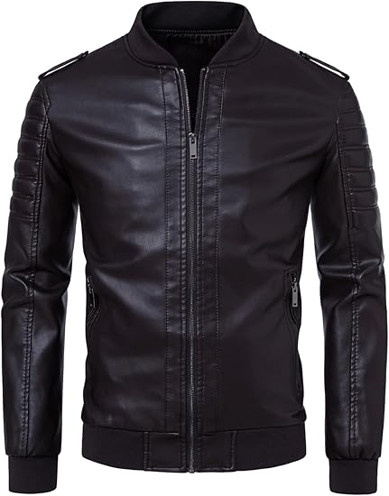 Men's Casual Zip Up Slim Bomber Faux Leather Jacket