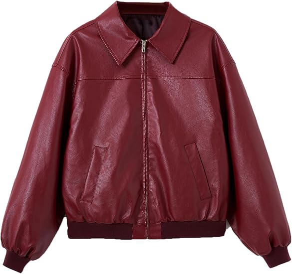 Women's Leather Jacket Collared Neck Lantern Sleeve Zip Up Streetwear Motorcycle Bomber Jacket Coat