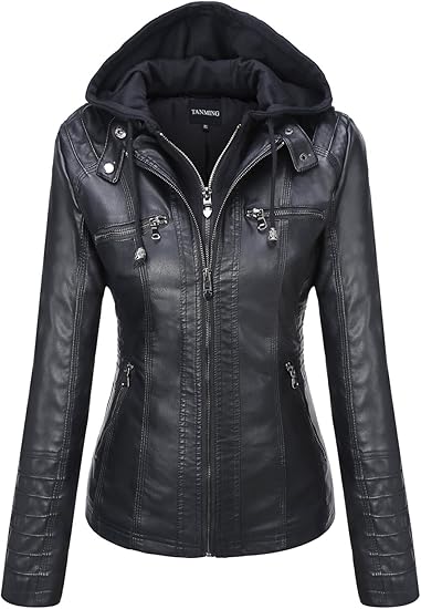 Men's Faux Leather Motorcycle Jacket Biker Coat with Hood PU Waterproof Vintage Bomber for Men