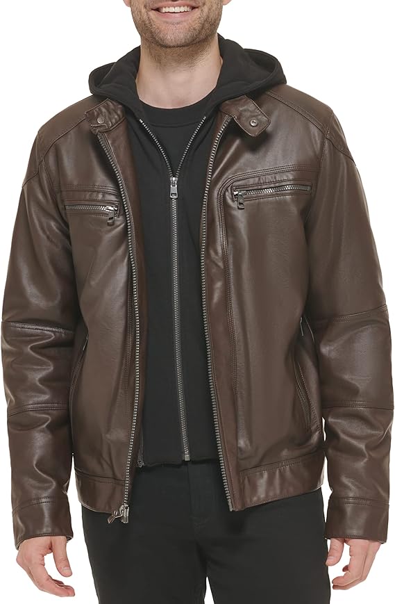 Men's Motorcycle Jacket With Removable Hoodie