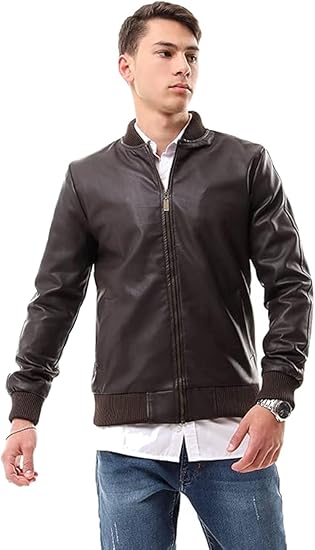 Men's Casual Zip Up Slim Bomber Faux Leather Jacket
