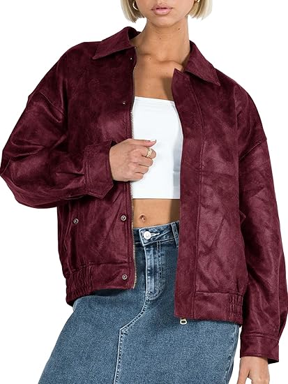 Womens Oversized Leather Jackets Faux Fall Outfits Fashion Clothes Motorcycle Coats Bomber Jacket