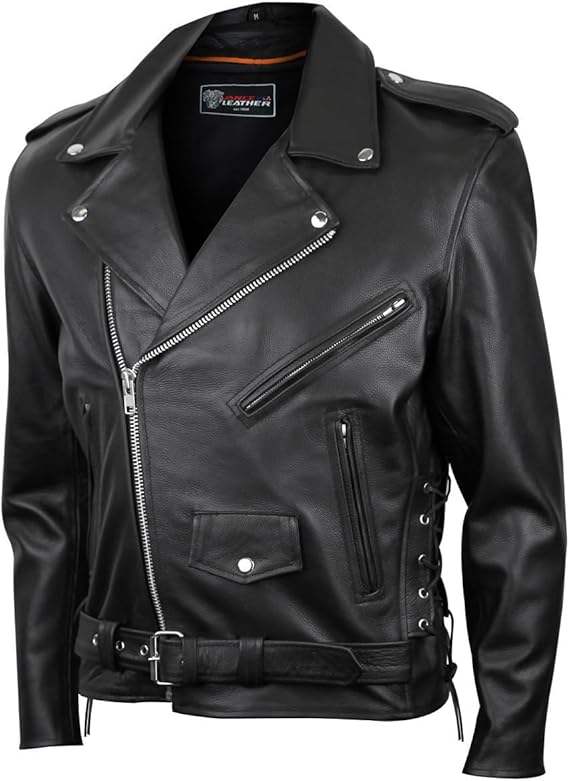 Mens Premium Cowhide Conceal Carry Insulated Liner Side Laces Classic MC Motorcycle Biker Black Leather Jacket